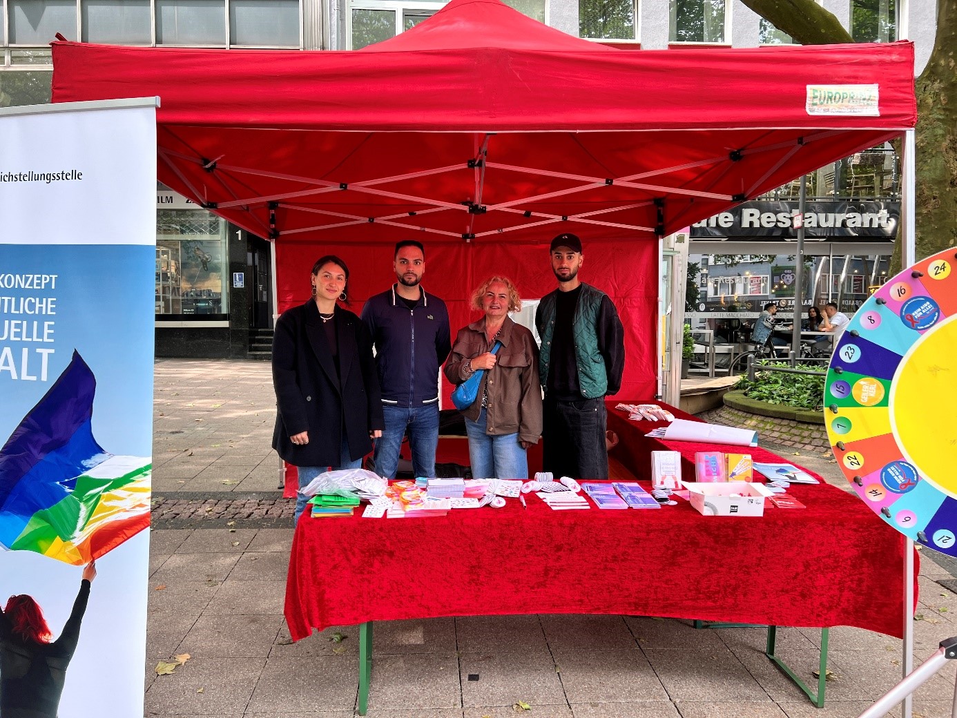 Der Informationsstand zum europäischen Testwoche, der auf der Kettwiger Straße in der Stadtmitte platziert war, stoß auf großes Interesse der Passanten. Mit dem Glücksrat, bei dem die Fragen zur sexuellen Gesundheit durch Interessenten geantwortet wurden, war eine spielerische und lockere Umgang mit den sonst Tabubesetzten Themen einfacher.