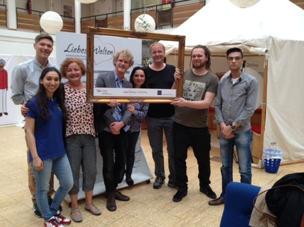 Reinhard Wiesemann, Gründer und Inhaber des Unperfekthauses in Essen hat sich unseren Parcous angesehen und war begeistert. Und das in solchem Maße, dass er sich spontan bereit erklärte, für die nächsten fünfzehn Gruppen, die den Parcours Liebeswelten durchlaufen, die Kosten zu übernehmen.